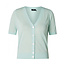 Licht en luchtig! Dit fijne vestje is een perfecte toevoeging voor je zomergarderobe. Het is gemaakt van een comfortabele viscose-nylonmix die heerlijk aanvoelt en subtiel glanst. Verkrijgbaar in twee frisse kleuren: pastelblauw en wit. Dit vestje heeft een V-hals en korte mouwen voor een elegante look.