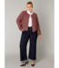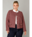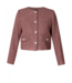 Fritha is een kort, klassiek jasje met een geweven pied de poule patroon en glitters die zorgen voor een subtiele shine. De stofmix met 15% wol geeft structuur en warmte, terwijl de grote knopen en ronde halslijn het geheel afmaken tot een veelzijdig en stijlvol item.